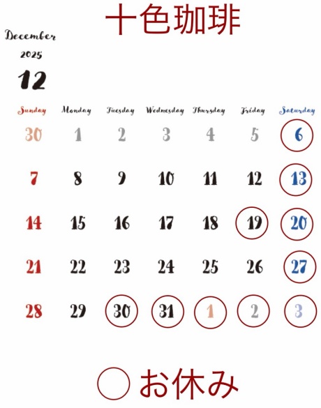 もう12月という事で、年末年始のお休みのスケジュールを考えている方も多いはず。当店の12月のお休みは以下のようになっております。