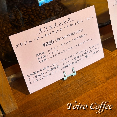 本日よりカフェインレスコーヒー豆の銘柄が変わりました。
