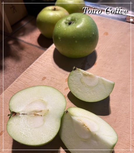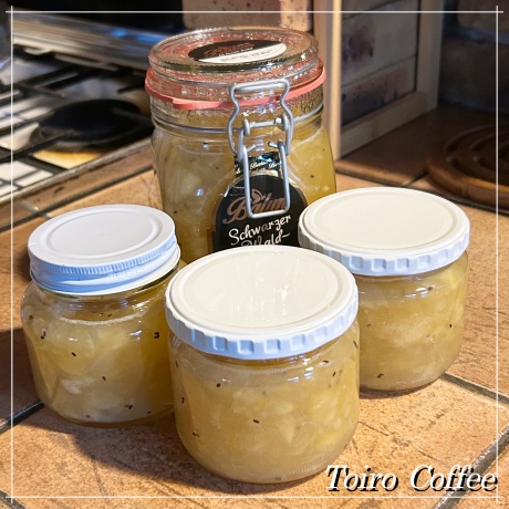 そのナチュラル豆の濃密なフルーティー感を、今日のランチは先日仕込んだブラムリーのジャムでトーストをいただきながら堪能しました。