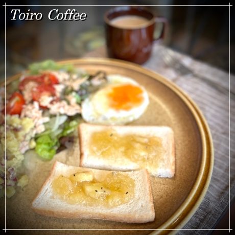 今日のランチはバタートーストに自家製ジャムを添えていただきました。合わせる飲み物はアイス・オ・レ。